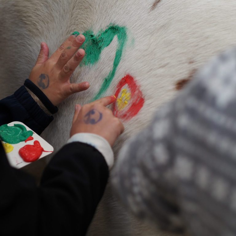 Eine kleine Auszeit für die Eltern, eine berührende, spassige Zeit für die Kinder mit den Ponies und Pferden. Die Nähe zu den Pferden stärkt die Kinder und schafft Verbundenheit und Selbstvertrauen.